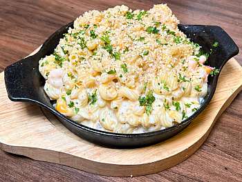 house smoked brisket, elbow macaroni, old cheddar bechamel, chives, garlic crostini, panko 34